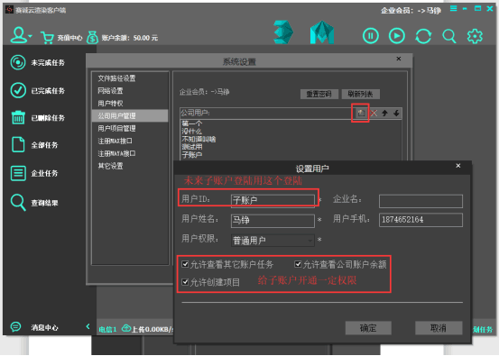 公司用戶管理功能(子賬戶創建)
