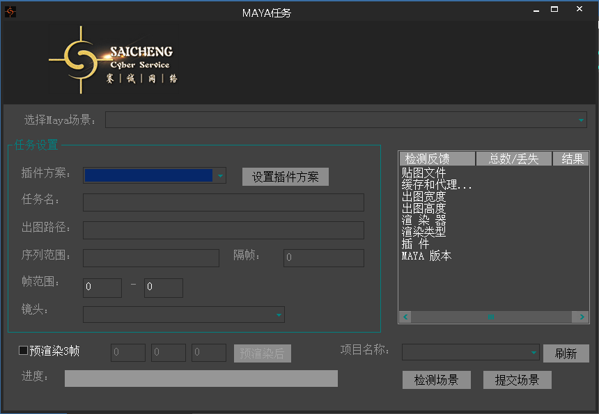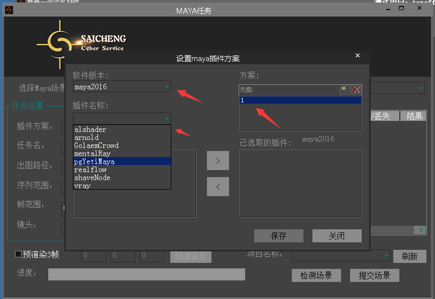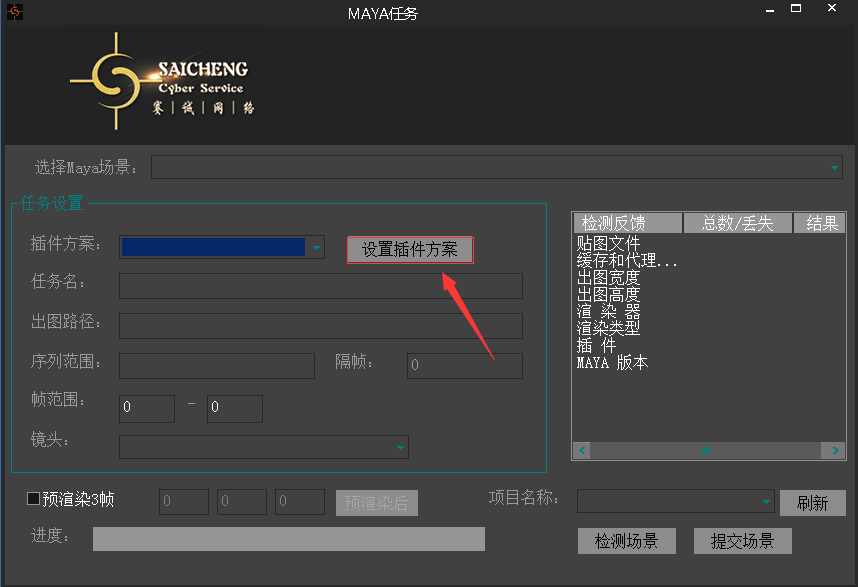 打開場景,設置好渲染參數,第一次使用的客戶端客戶需要先設置插件方案,